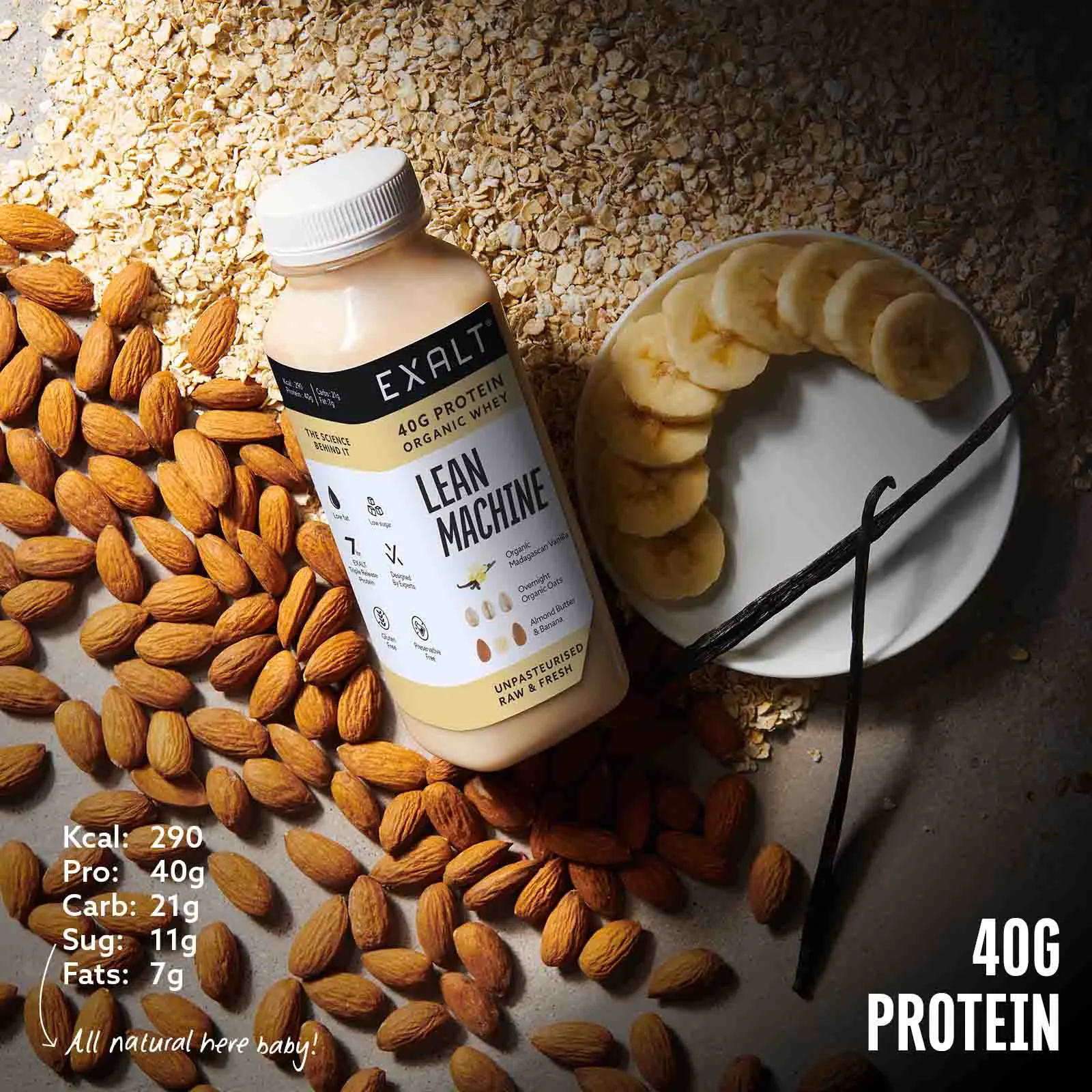 Low sugar, low fat, and designed to keep you fuller for longer with a massive 40g of protein.Â